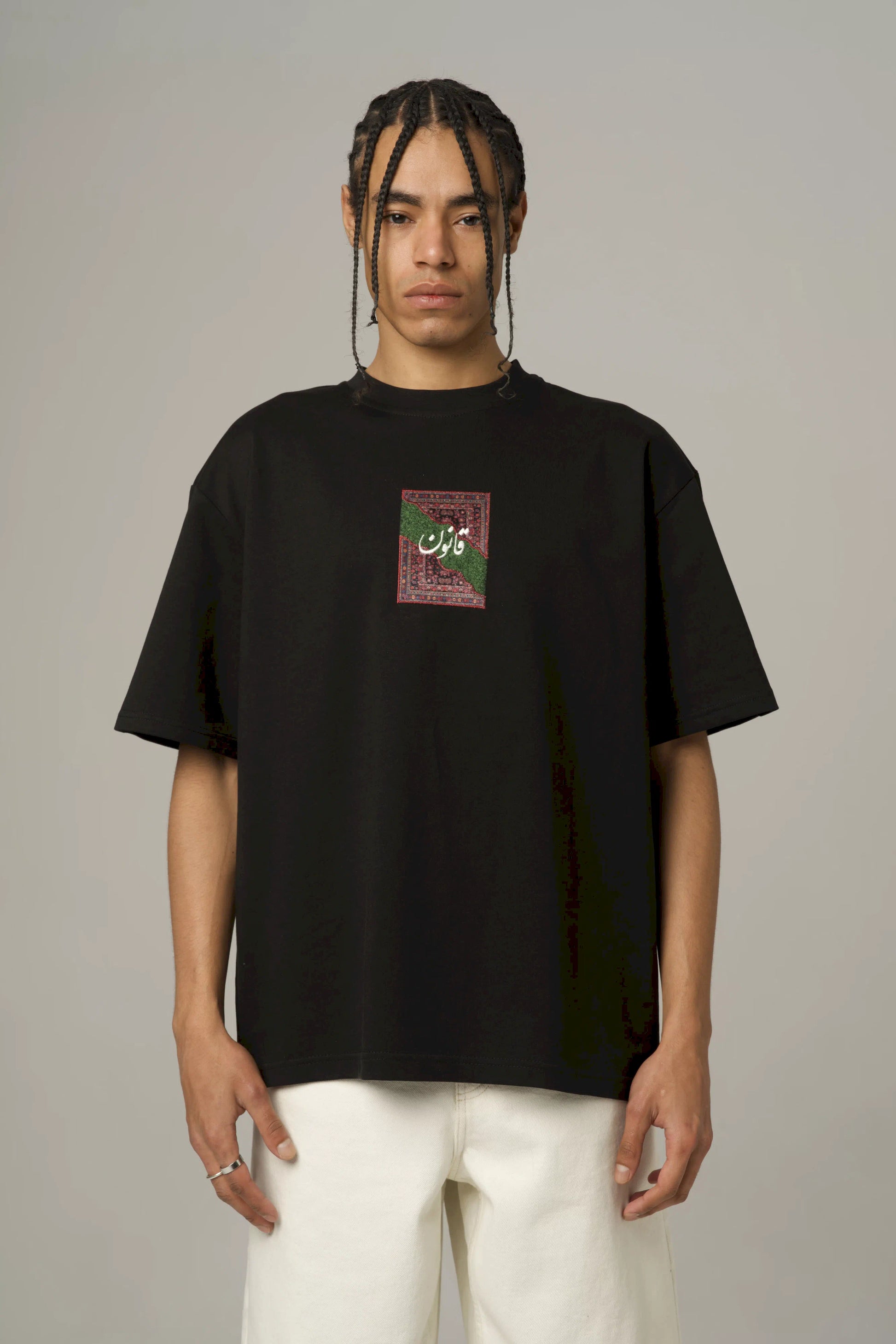 Bu sıradan bir baskılı tişört değil. Kanun baskı ve kanun nakış detaylarıyla zenginleşen yüzeyi, 2 iplik kumaşın tok duruşuyla birleşerek ilk anda daha güçlü, daha rafine ve daha premium bir etki yaratır. Grafik dili yalnızca görünüm değil, parçaya daha karakterli ve daha seçkin bir ağırlık kazandırır.